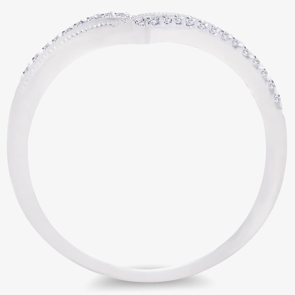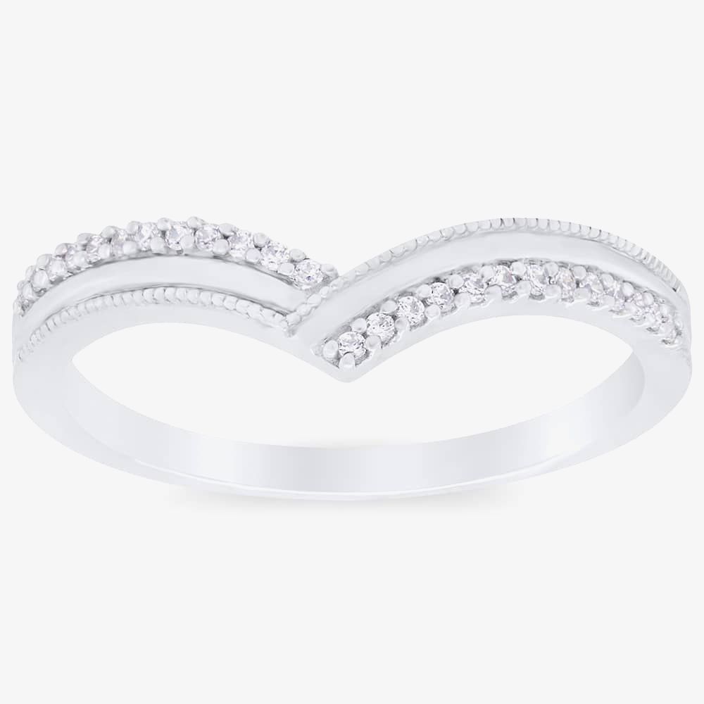 This elegant wishbone ring has been crafted in 9ct white gold and features 0.10ct of claw set diamonds with an eye catching mill grain pattern.