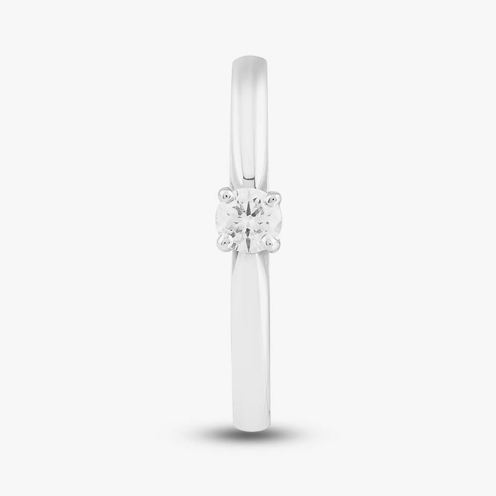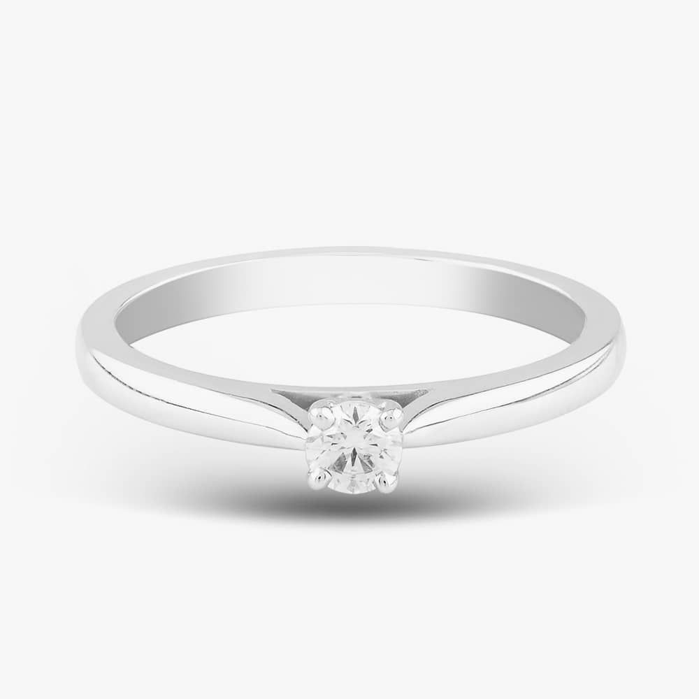 Crafted with a touch of simplicity, this solitaire ring exudes timeless elegance. Delicate 18ct white gold embraces a sparkling 0.12ct brilliant-cut white diamond, nestled securely in a classic four-claw setting. The perfect accompaniment for any special occasion, this ring promises to leave a lasting impression.