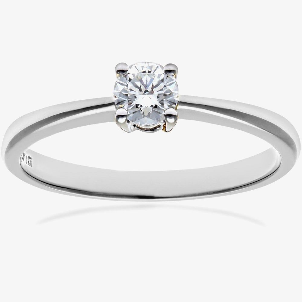 This elegant solitaire ring is crafted in 9ct white gold & features a four-claw brilliant cut sparkling diamond which has a total carat weight of 0.25ct. This ring is a perfect stand-alone piece or ideal for layering & combining with other rings to create your own unique look.