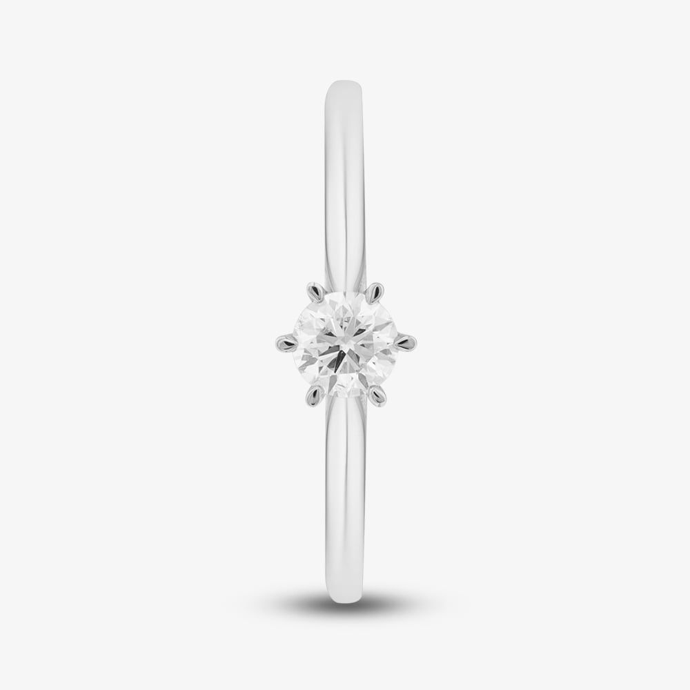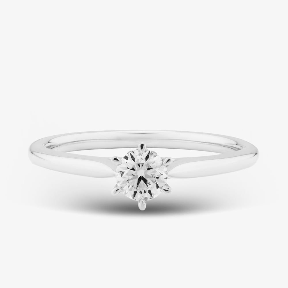 This exquisite 9ct white gold ring features a 0.33ct brilliant-cut diamond solitaire, set in a classic six-claw setting. With H colour and SI2 clarity, the diamond sparkles beautifully, making it a timeless and elegant choice for any special occasion.