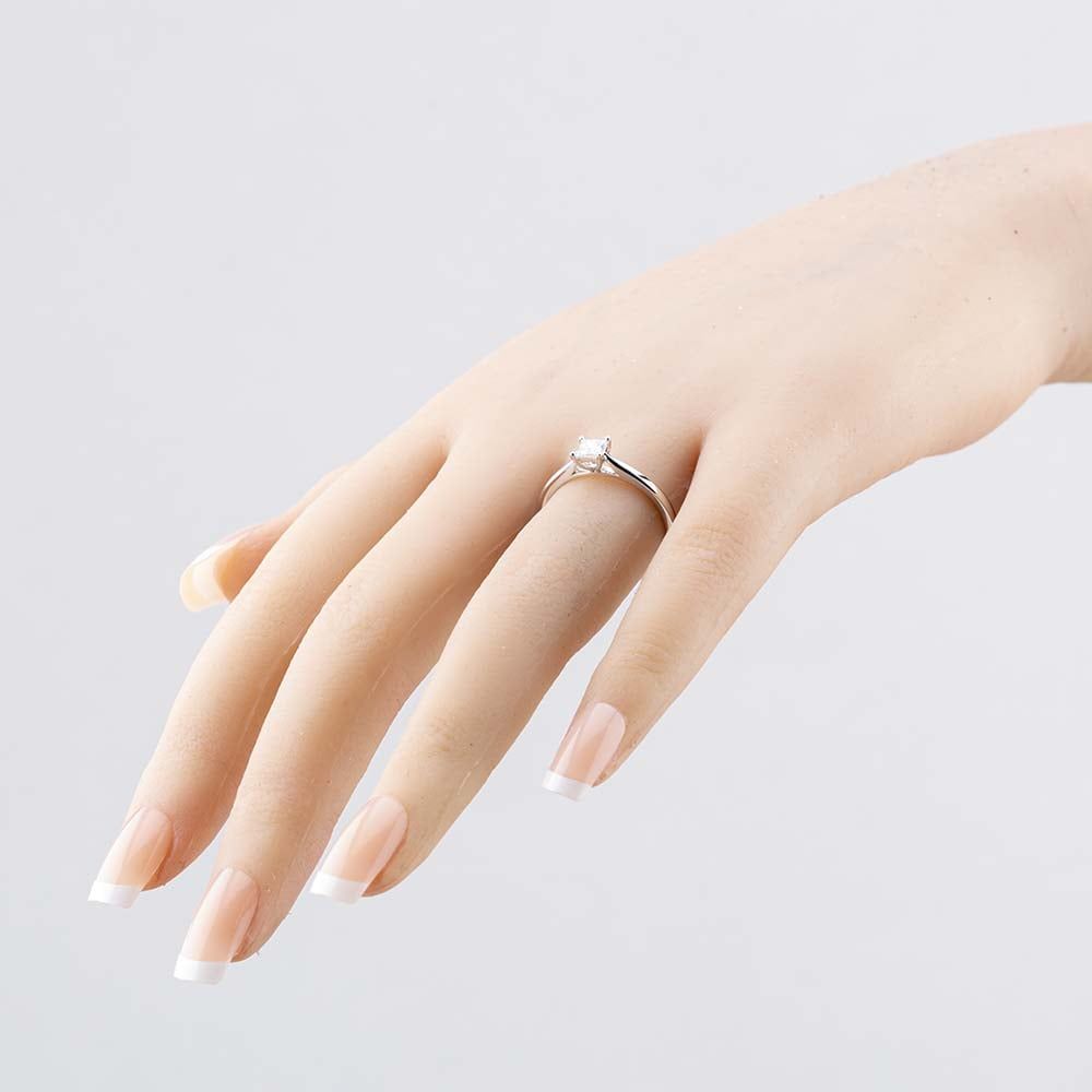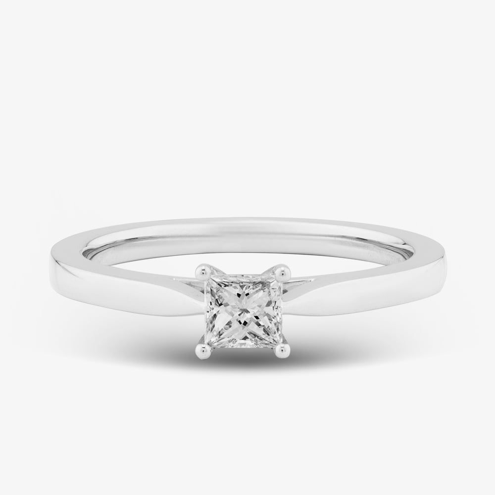 This elegant 9ct white gold ring features a 0.20ct princess-cut diamond solitaire, set in a classic four-claw setting. With H colour and SI2 clarity, the diamond showcases stunning brilliance, making it a timeless and sophisticated choice for any special occasion.
