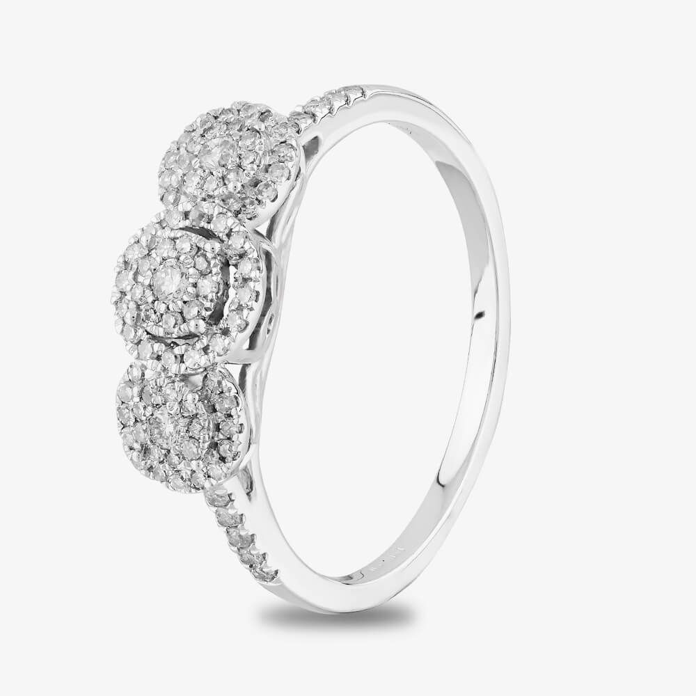 9ct White Gold 0.35ct Diamond Triple Cluster Shoulder Set Ring TH012575R