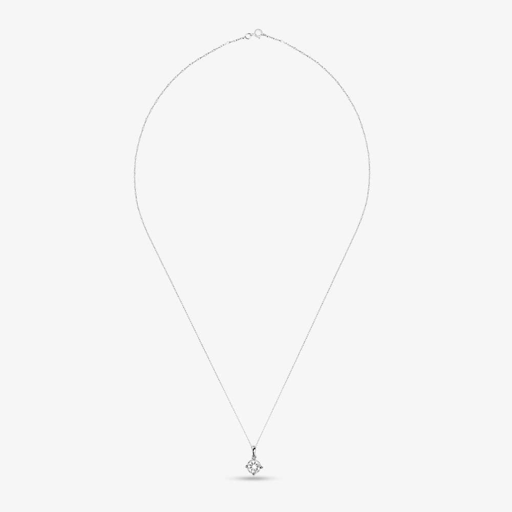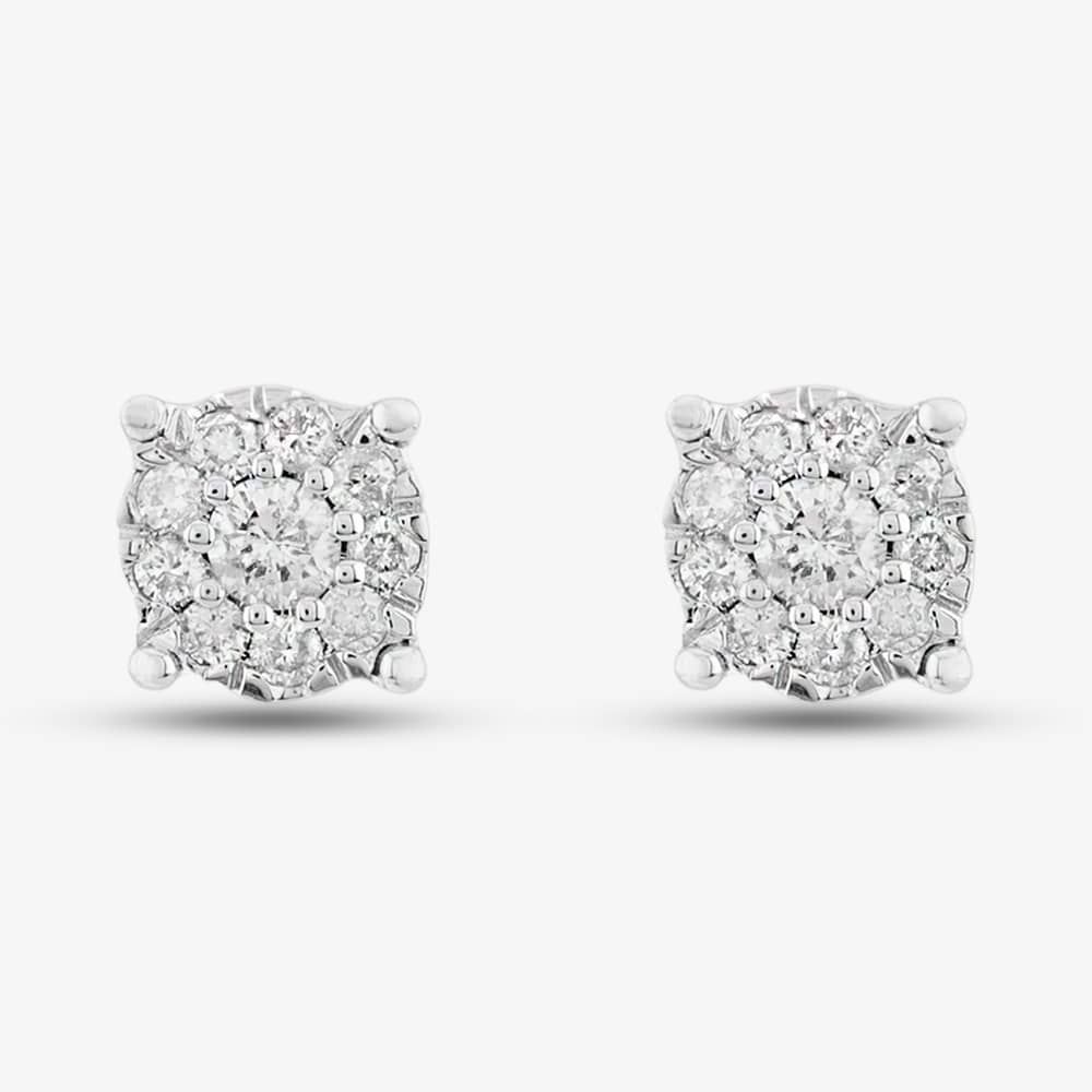 A matching pendant and stud earring set, where the focal point of each piece is the nine-claw centre diamond, which is surrounded by a halo of nine smaller stones.