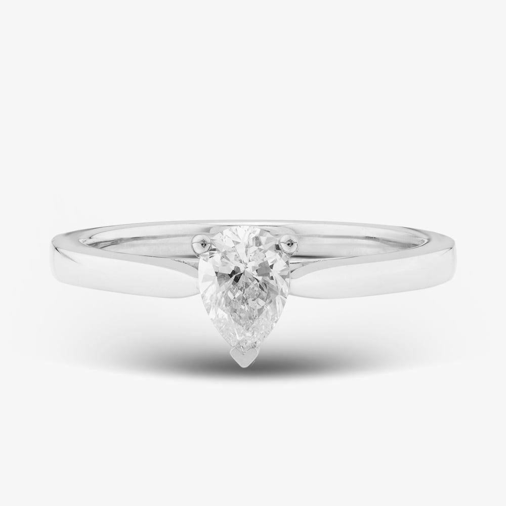 This stunning 9ct white gold ring features a 0.50ct pear-cut diamond solitaire, set in a graceful three-claw setting. With H colour and SI2 clarity, the diamond radiates brilliant sparkle, offering a timeless and elegant look perfect for any special occasion.