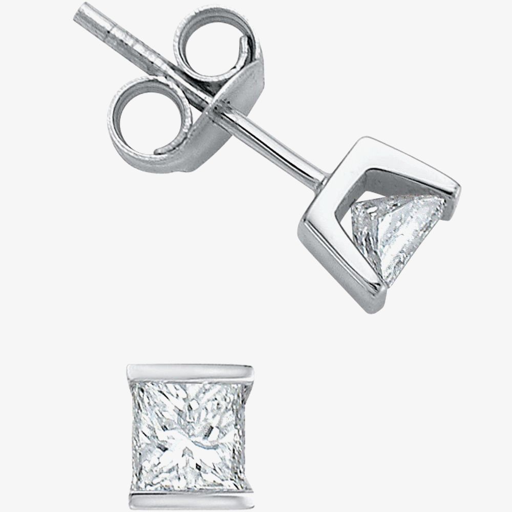 Created in 9ct White Gold, these stud earrings feature princess cut diamonds with a total weight of 0.75ct.