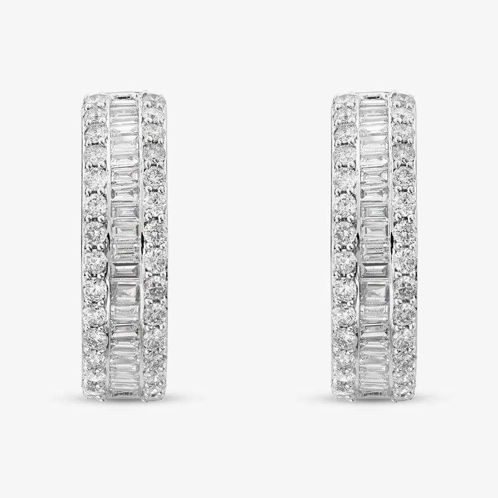 Crafted in 9ct white gold, these striking hoop earrings feature a total of 1.00ct of dazzling diamonds. Designed with two outer rows of brilliant cut diamonds and a central row of elegant baguette cut diamonds, they offer a bold yet sophisticated sparkle perfect for elevating any look.