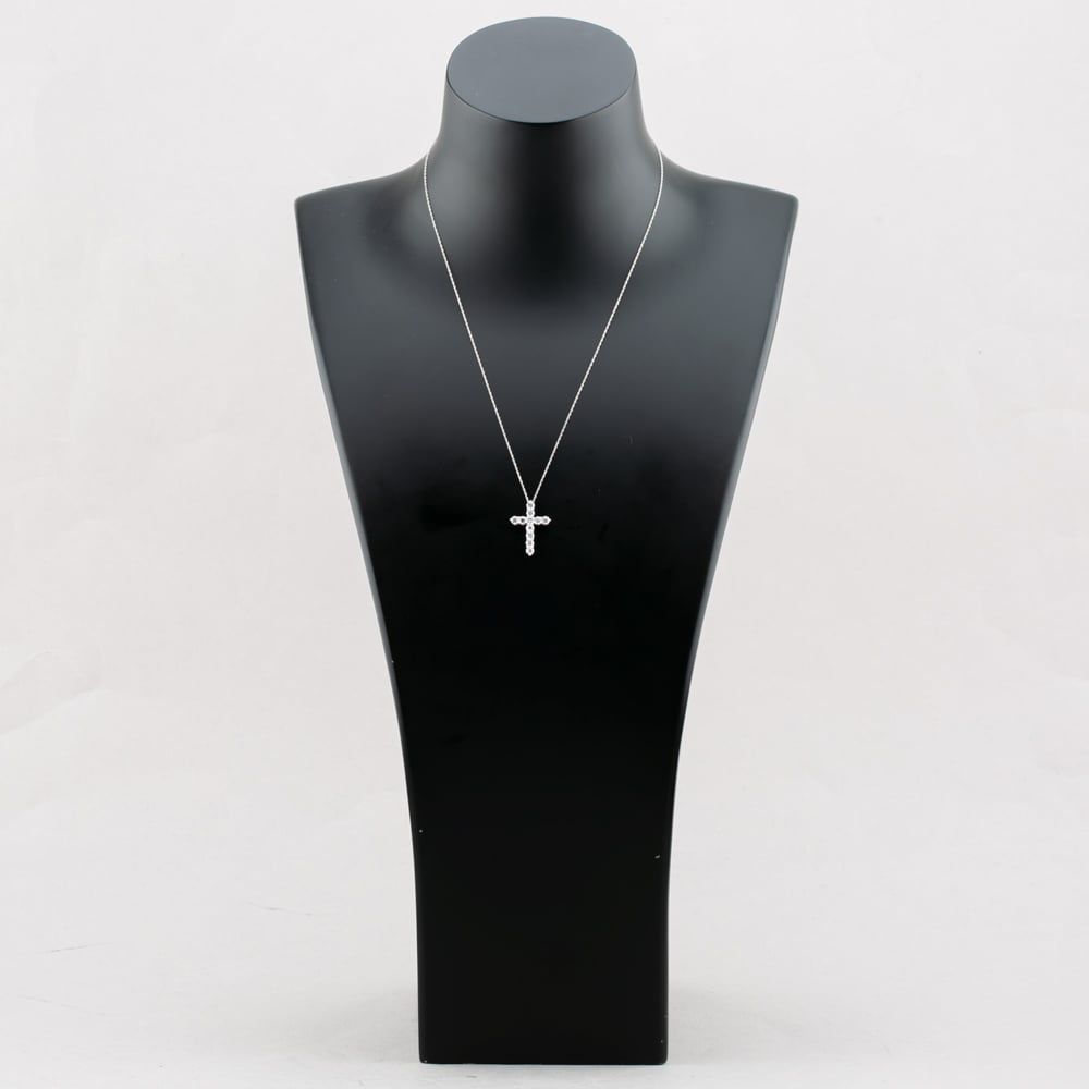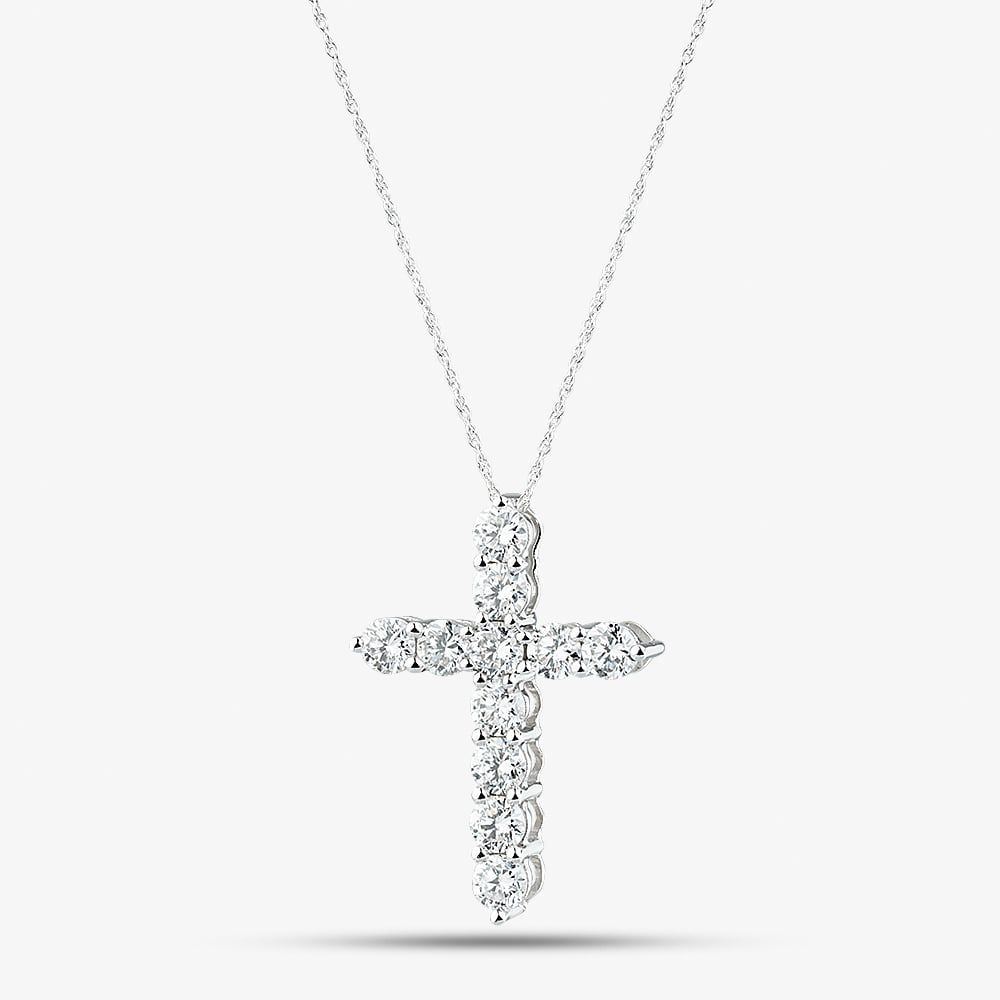 Timeless and elegant, this 9ct white gold fine chain necklace features a cross pendant adorned with brilliant-cut white lab-grown diamonds. Finished with a secure bolt ring clasp, it offers subtle sparkle and refined, ethically conscious luxury, a thoughtful gift or a cherished addition to any jewellery collection.