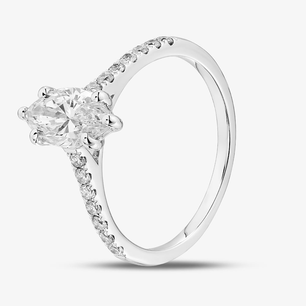 Radiate elegance with this 9ct White Gold Diamond Ring, showcasing a graceful marquise-cut lab-grown centre diamond adorned with sparkling lab-grown diamond shoulders, totalling 1.20ct. Crafted to capture maximum brilliance, this ethically conscious piece combines delicate beauty with timeless luxury, a truly enchanting treasure.