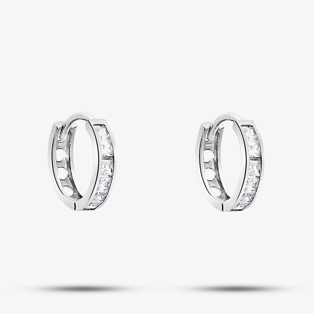 9ct White Gold 11mm Crystal Huggie Hoop Earrings 5.57.9699