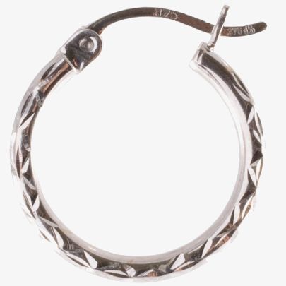 9ct White Gold 13mm Diamond Cut Creole Earrings 5-53-8399 9ct White Gold 13mm Diamond Cut Creole Earrings 5-53-8399
