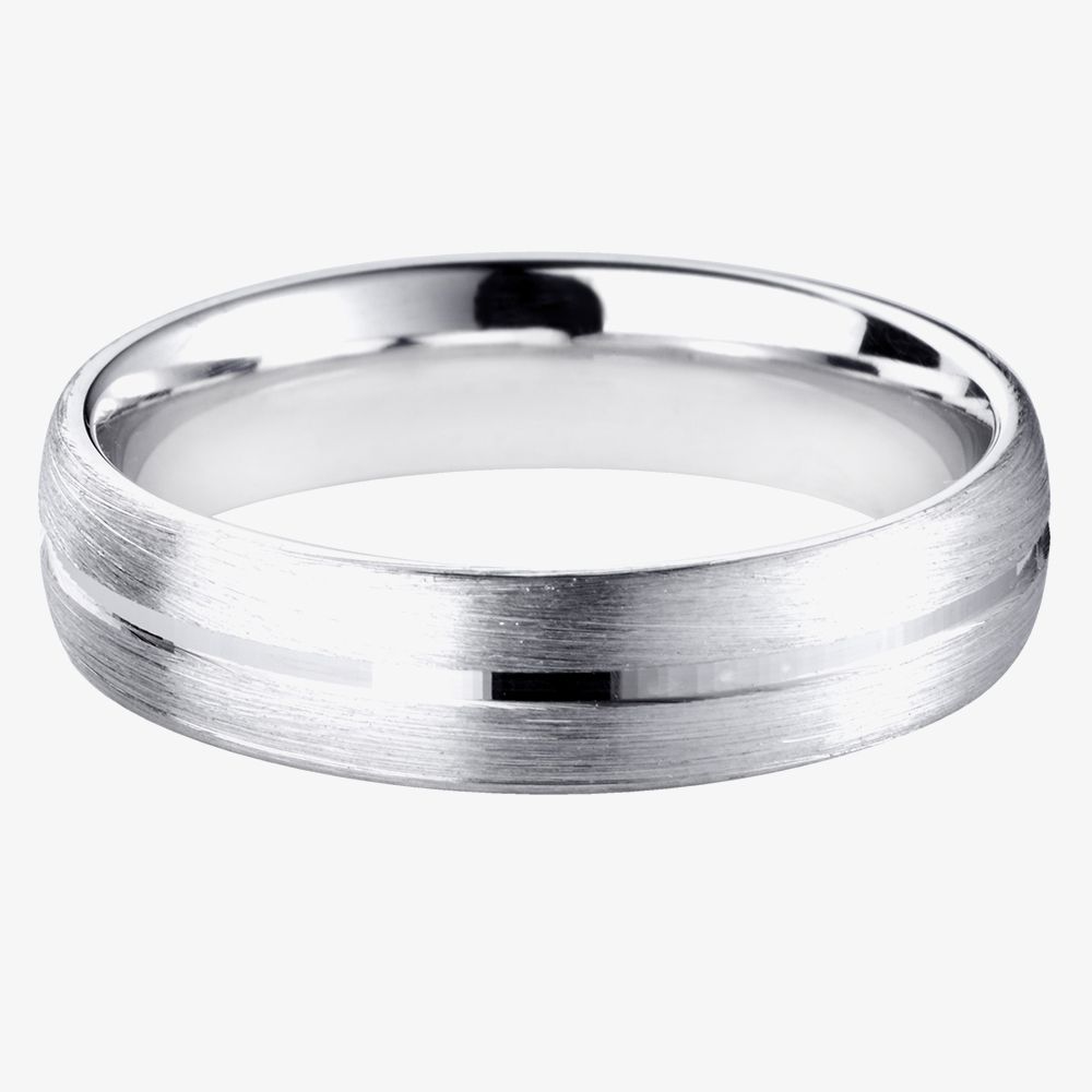 Featuring a 9ct white gold court-style wedding band, the 9ct White Gold 5mm Satin Finish Wedding Ring BFC5.0/F06 9W has a 4mm band width and features a satin finish with a polished 'high-shine' line running through the centre to give any wedding set a textured look.
