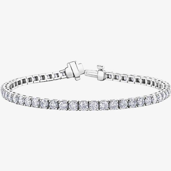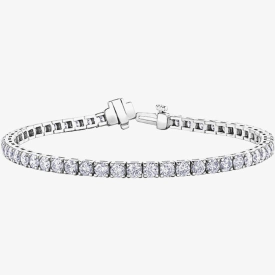 This exquisite 9ct White Gold bracelet is adorned with claw set round cut diamonds with a total carat weight of 5.00ct. It is 7.5 inches in length and fastens with a snap clasp.