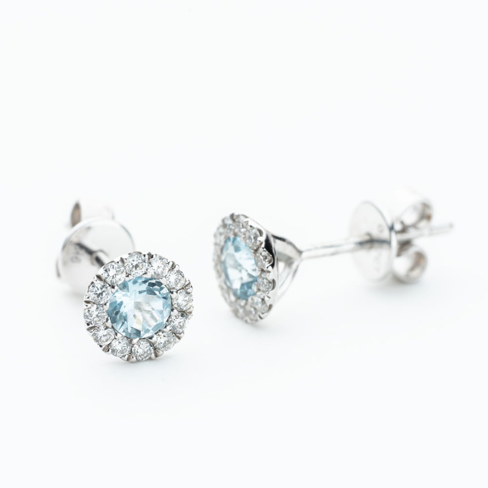 These stunning 9ct White Gold Aquamarine & 0.16ct Diamond Cluster Stud Earrings feature delicate pale blue aquamarines encircled by a halo of sparkling diamonds for a radiant finish. Crafted from polished 9ct white gold, the cluster design enhances the natural brilliance of each stone, creating a timeless and elegant look. Perfect for adding a touch of refined sparkle to any outfit, these earrings are ideal for both everyday wear and special occasions.