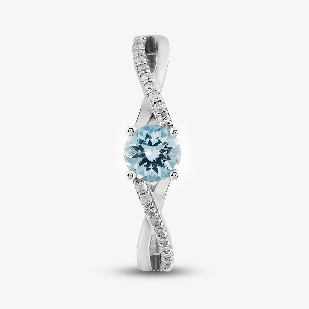 This exquisite crossover ring is delicately crafted from 9ct white gold and set with a dazzling brilliant-cut aquamarine stone. The aquamarine is accentuated by brilliant-cut white diamonds that form a crossover design on the shoulders of the ring. The diamonds are set in a four-claw setting that allows them to sparkle and catch the light. This ring is a stunning example of craftsmanship and beauty, and it would make a perfect gift for a loved one.