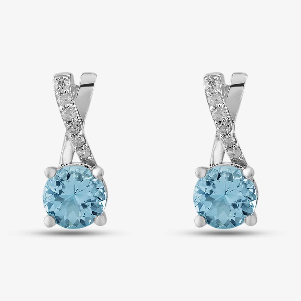 9ct White Gold Aquamarine & Diamond Crossover Stud Earrings OJE1703-AQ