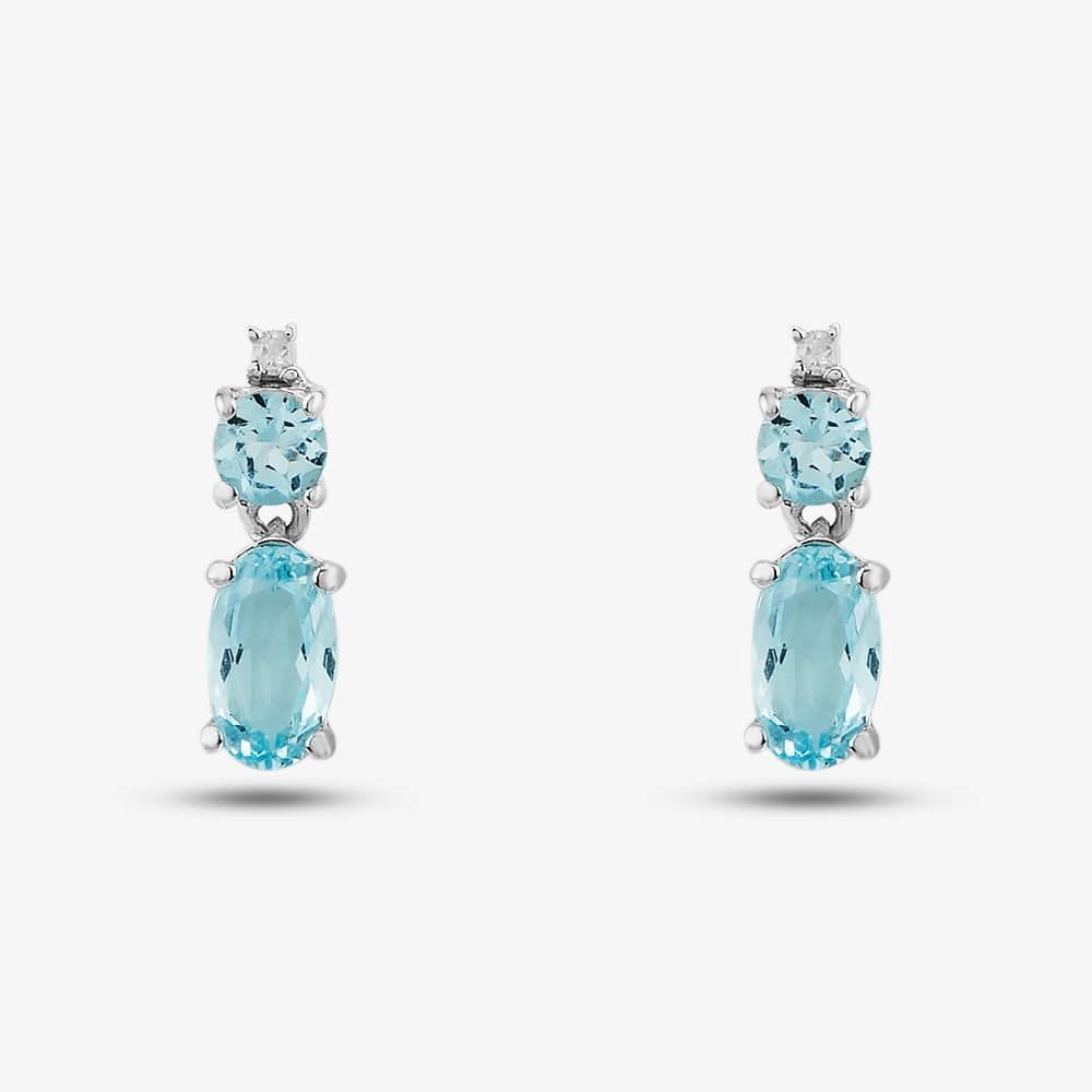 9ct White Gold Aquamarine & Diamond Dropper Earrings BSSE413-AQ  9ct White Gold Aquamarine & Diamond Dropper Earrings BSSE413-AQ