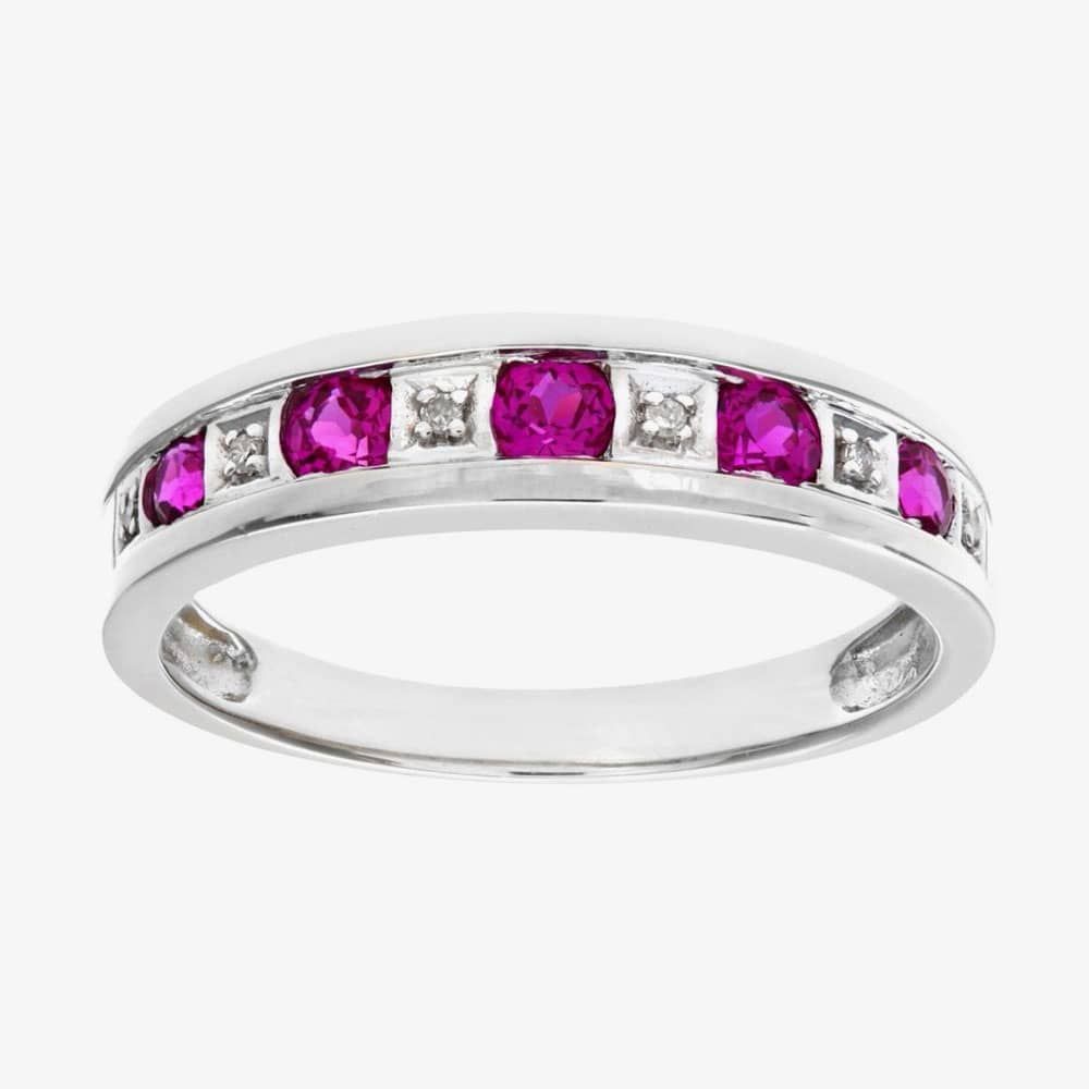 9ct White Gold Brilliant Cut Ruby & 0.02ct Diamond Half Eternity Ring PR10429W RU