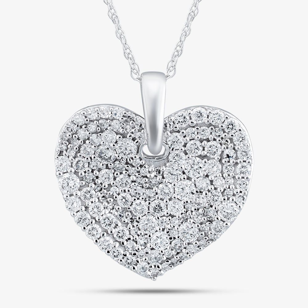 Add timeless elegance with this 9ct White Gold Heart Pendant Necklace. The heart-shaped pendant is beautifully set with 1.00ct of certified white lab-grown diamonds in varying sizes, suspended from a delicate Prince of Wales chain and secured with a bolt ring clasp. Perfect as a luxurious gift or a sparkling addition to your own collection.