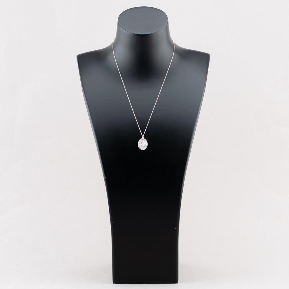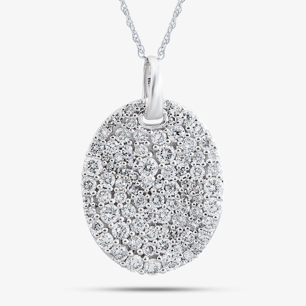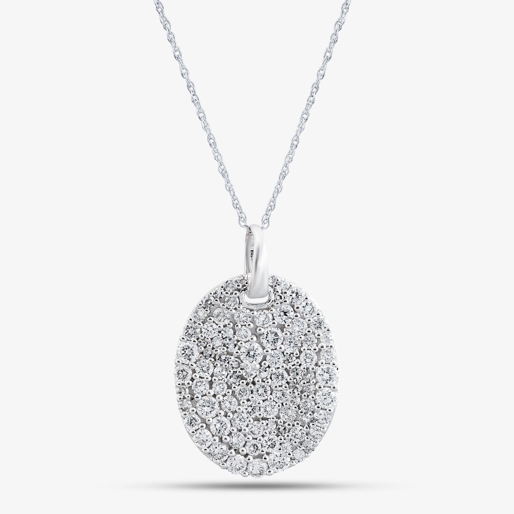 Exude refined sophistication with this 9ct White Gold Oval Pendant Necklace. The elegant oval pendant is adorned with certified white lab-grown diamonds in varying sizes, creating a captivating play of light and sparkle. Suspended from a Prince of Wales chain and finished with a secure bolt ring clasp, this exquisite piece is the perfect luxury gift or a stunning addition to an exclusive jewellery collection.