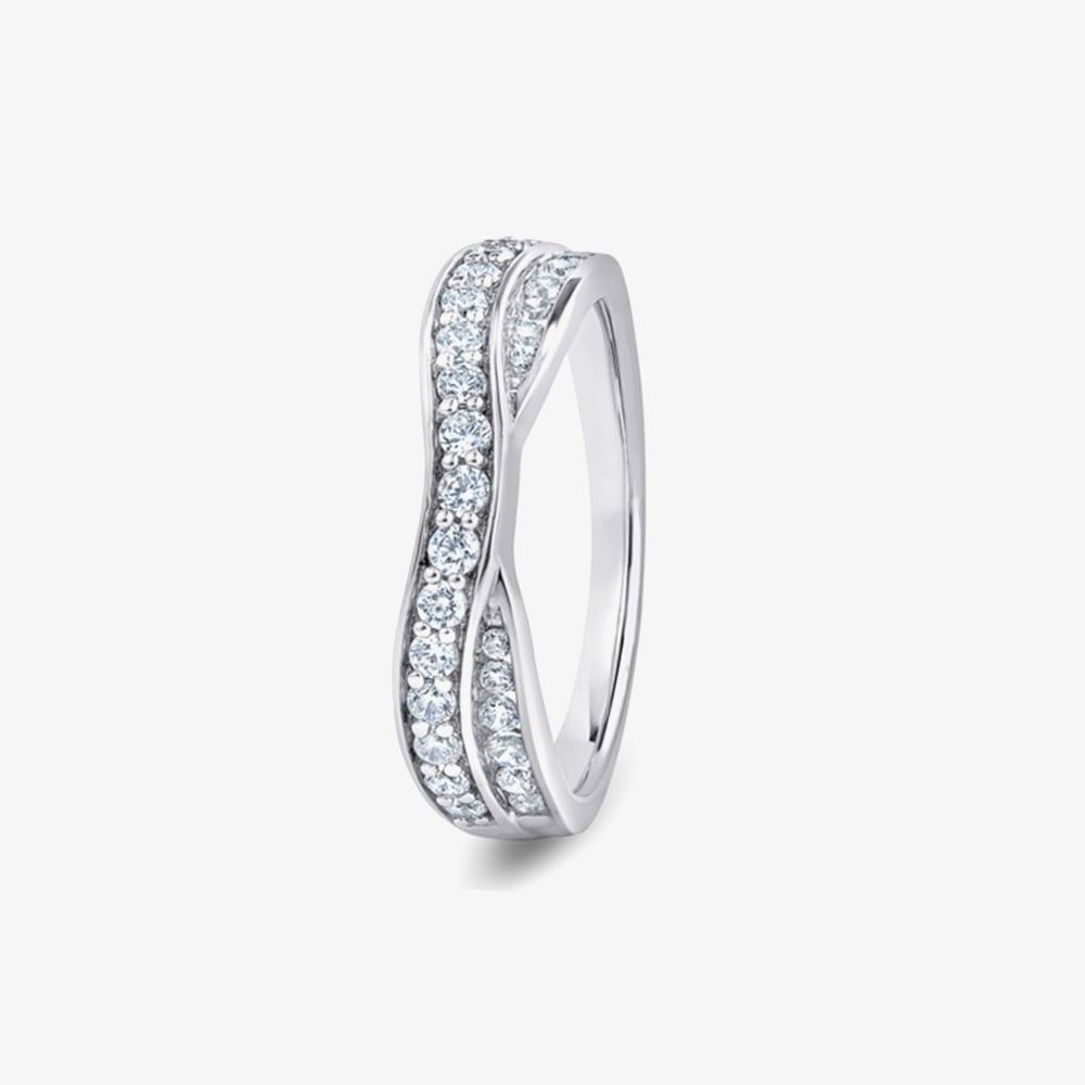 Elevate your style with this captivating ring, meticulously crafted from stylish 9ct white gold. The unique dipped design creates an organic, flowing line, artfully showcasing a subtle trail of sparkling diamonds. This modern yet timeless piece offers a comfortable fit and a beautiful blend of warmth and brilliance, making it an ideal choice for a chic everyday accessory or a meaningful gift.