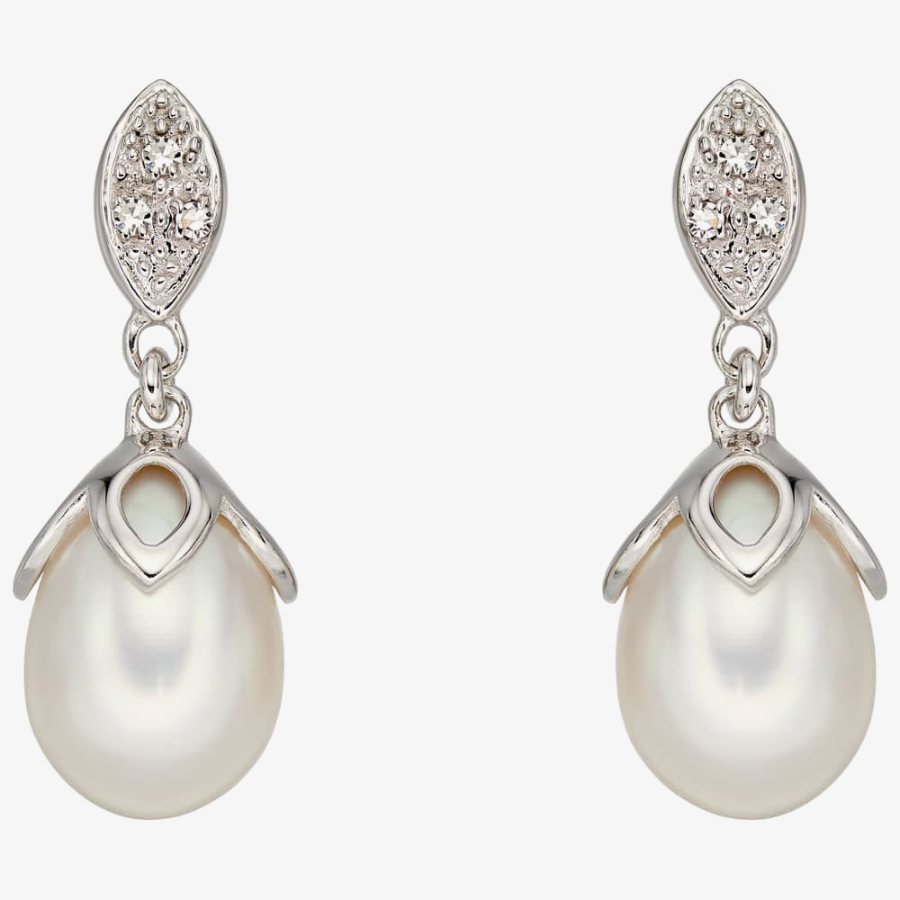 T.H.Baker 9ct White Gold Diamond And Fresh Water Pearl Dropper Earrings GE2223W