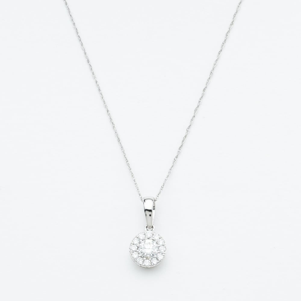 This elegant 9ct white gold necklace features a stunning halo cluster pendant, with a central diamond weighing 0.25ct surrounded by 12 sparkling diamonds totalling 0.13ct. The brilliant halo design enhances the pendant’s sparkle, creating a timeless and sophisticated piece perfect for everyday elegance or special occasions.