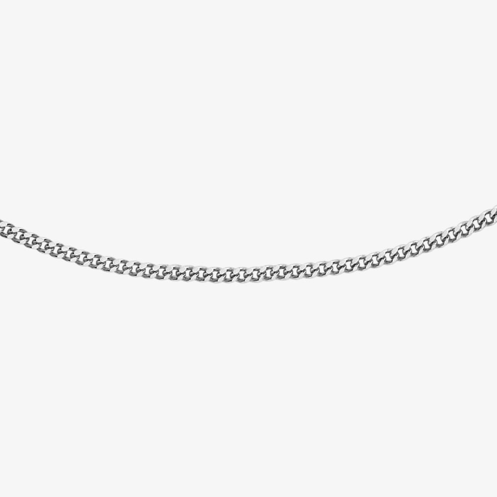 This adjustable 16–18 inch curb chain is crafted from 9 carat white gold, featuring links that are 25 faceted diamond-cut to catch the light with a subtle, sparkling effect. With a slim 0.8mm width and a delicate weight of 0.82g, it offers a light, comfortable feel on the neckline. Finished with a secure spring ring clasp, it is ideal for everyday wear or layering with a pendant, appealing to those who appreciate refined, classic craftsmanship.