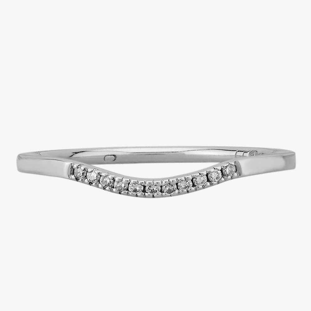 An eleven stone channel-set half eternity ring, dipped to fit around an engagement ring, given beaded detailing for added texture.