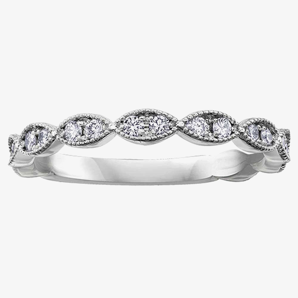 Give your ring finger an elegant sparkle with this attractive diamond ring, ideal for special occasions. The attractive half eternity design is crafted from 9ct white gold, featuring a stylish repeating ten marquise-shape design, intricate grained edge detailing and set with two dazzling diamonds per ellipse.