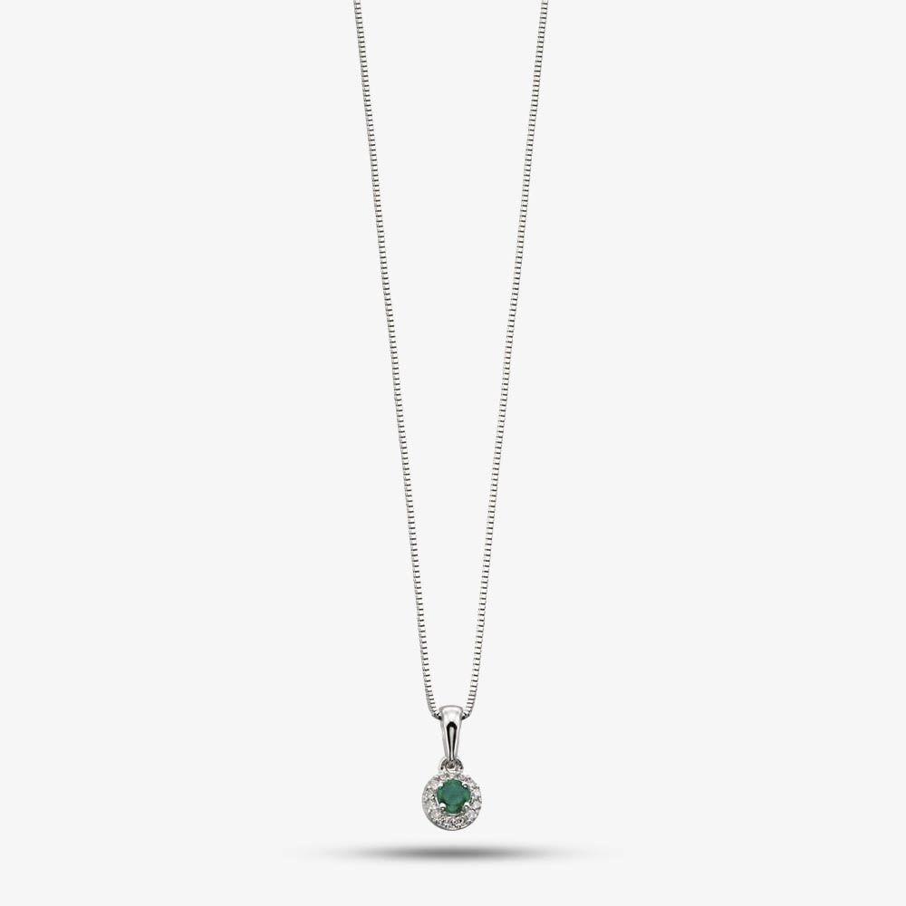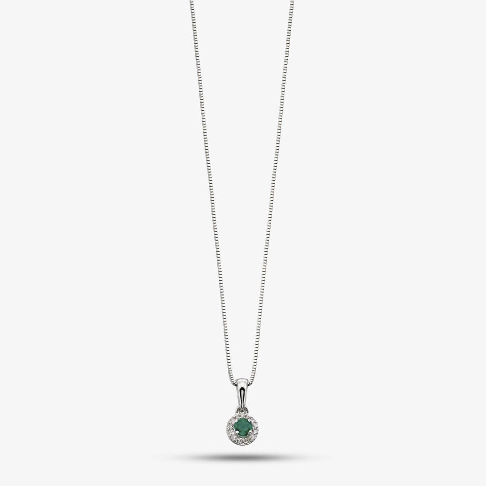 This stunning pendant has been beautifully crafted from 9ct white gold. At the centre of the pendant is a gorgeous emerald surrounded by sparkling diamonds. The perfect piece to finish any outfit.