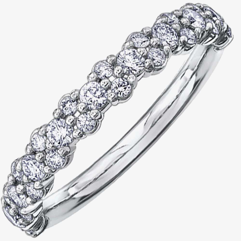Eleven large and twenty small round brilliant diamonds have been used to make this particularly fancy ring. To achieve a quality output you need input quality; constructed from 18 carat white gold, this ring does just that. With high shine and impressive sparkle, it will not fail to produce a smile.