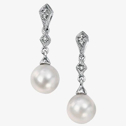 9ct White Gold Diamond Freshwater Droppers GE807W 9ct White Gold Diamond Freshwater Droppers GE807W