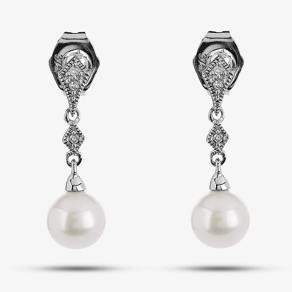 9ct White Gold Diamond Freshwater Droppers GE807W