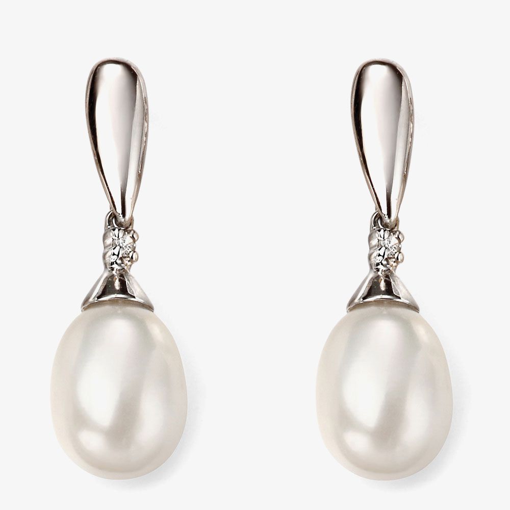 9ct White Gold Diamond Freshwater Pearl Dropper Earrings GE2075W