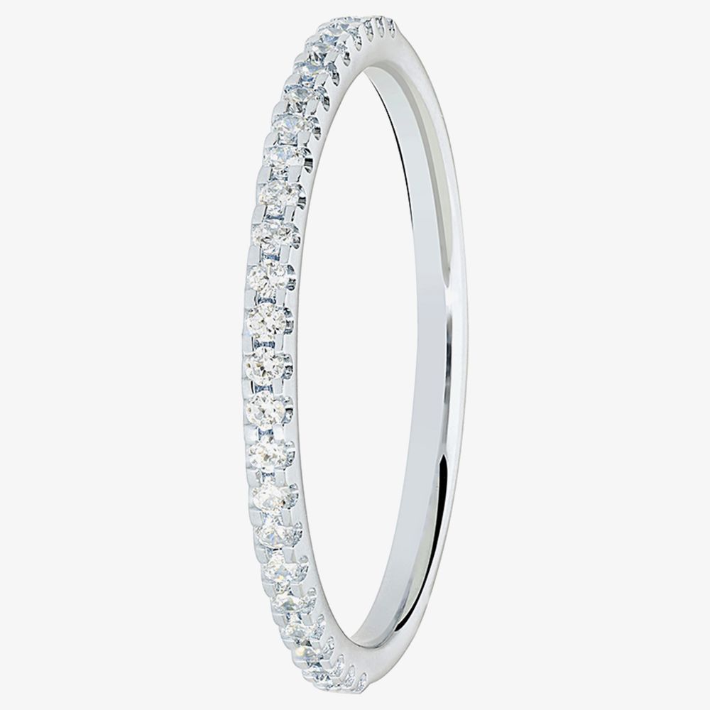 Perfect for adding some extra sparkle to your bridal ring set, the 9ct White Gold Diamond Half-Eternity Wedding Ring RMW-140-050-0159W is a must-have. Made from 9ct white gold this half-eternity ring features a row of stunning round brilliant-cut diamonds set in four claw arrangements.