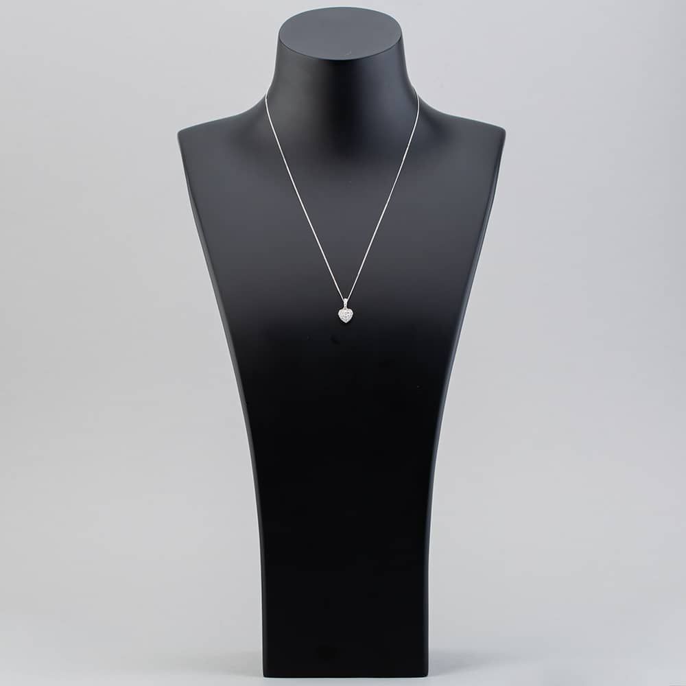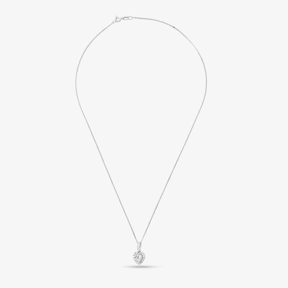 This sparkling cluster necklace has been elegantly created in 9ct white gold and features a heart shape design set with glistening claw set round cut diamonds which when worn catch the light beautifully. This traditional necklace is accompanied with a curb link chain that has a bolt ring fastening. The perfect sentimental gift for that someone special.