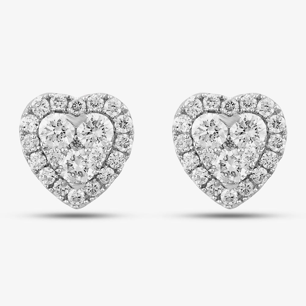 These traditional stud earrings have been expertly created in 9ct white gold and feature a heart shape design set with sparkling round cut diamonds which when worn catch the light beautifully. These elegant earrings have been completed on a post and butterfly back fastening. The perfect gift for that someone special.
