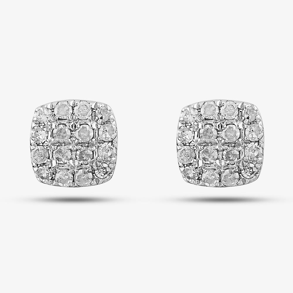 These classy stud earrings have been expertly created in 9ct white gold and feature a rounded square design set with pave set sparkling round cut diamonds which when worn catch the light beautifully. These elegant earrings have been completed on a post and butterfly back fastening. The perfect gift for that someone special.