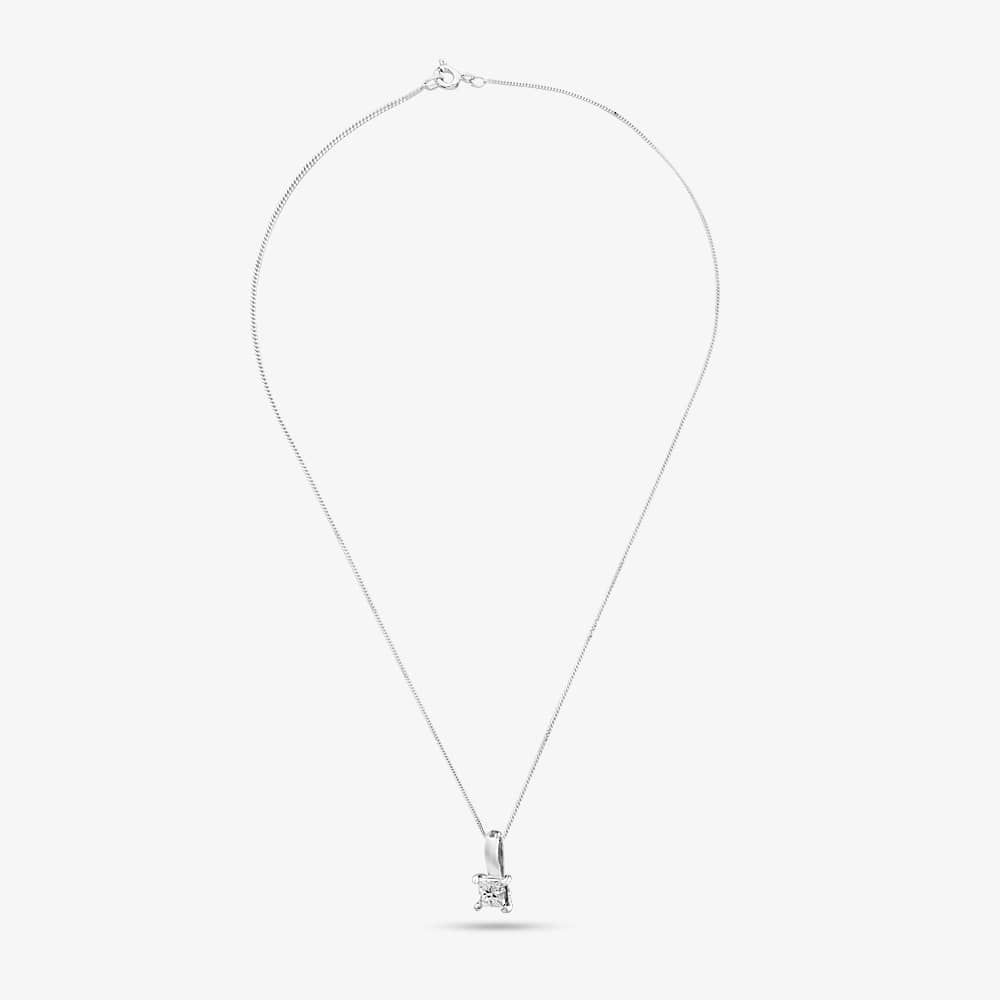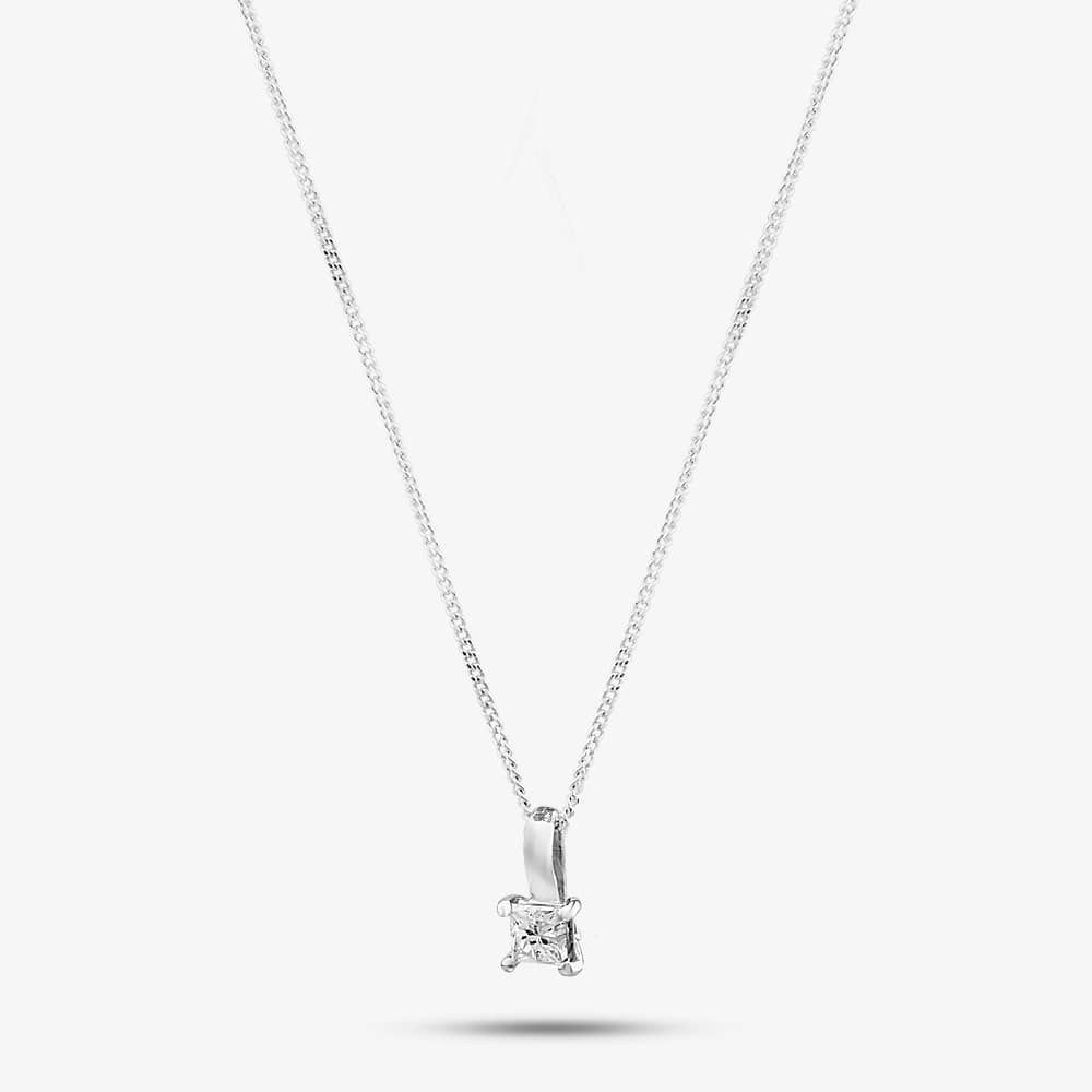 This exquisite jewellery set is crafted from 9ct white gold and features 0.22ct of sparkling white princess-cut diamonds. The pendant necklace is suspended on a delicate belcher chain with a bolt ring fastening, and the stud earrings have a post and butterfly backing. This is the perfect set to complete your look for any special occasion. Whether you're dressing up for a night out or just want to feel a little bit extra special, this set will make you shine.