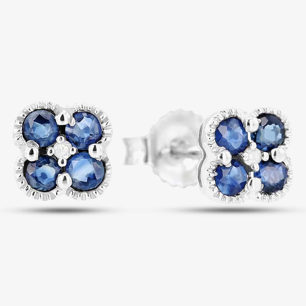 9ct White Gold Diamond Sapphire Flower Stud Earrings VE0S141 9KW-SAPH