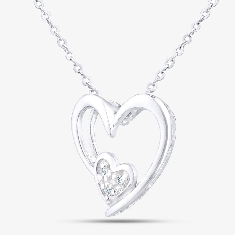 This attractive necklace is crafted in 9ct white gold & features a double heart design set with sparkling diamonds which has a total carat weight of 0.015ct. This necklace is a perfect stand-alone piece or ideal for layering & combining with other necklaces or pendants to create your own unique look.