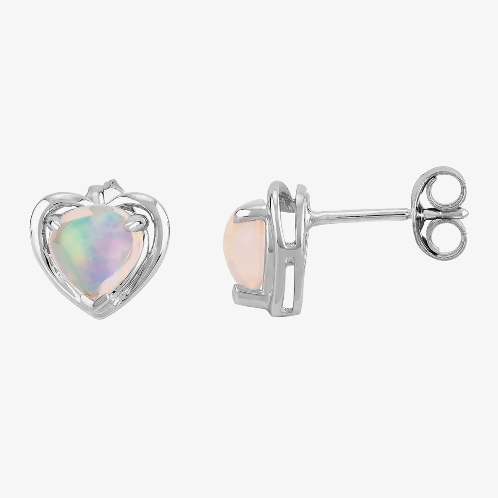 9ct White Gold Heart-cut Opal Stud Earrings OJE0210-EO