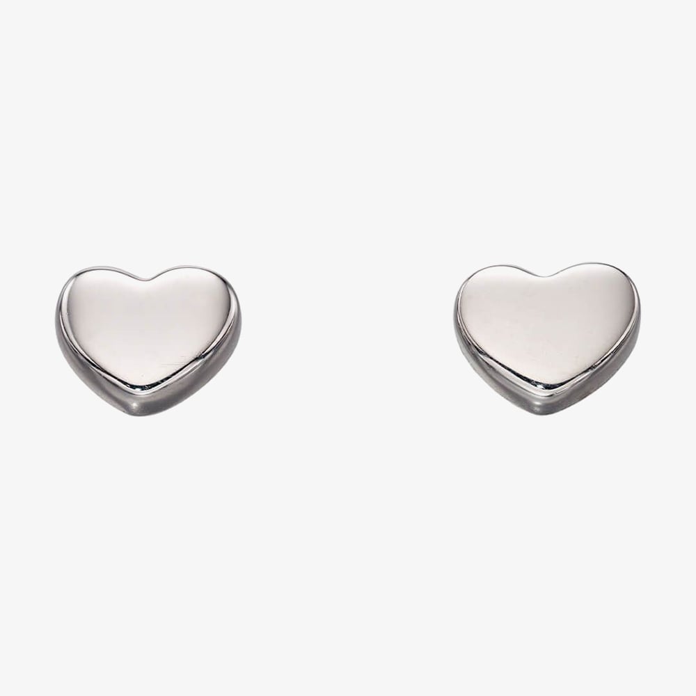 Chic and timeless, these heart-shaped stud earrings are crafted from polished 9ct white gold. A subtle symbol of love, perfect for everyday elegance or as a thoughtful gift.