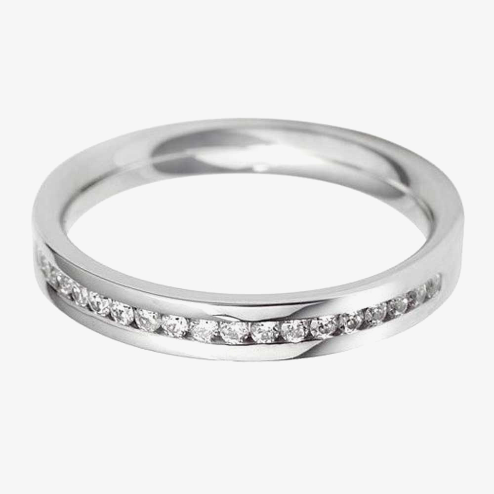 A beautifully sparkly wedding ring that makes a standout addition to any ring finger. Expertly crafted in 9ct white gold, featuring a channel of dazzling diamonds in an attractive flat court shape finish. Our range of wedding rings encompasses all the needs of the modern market place, that is style, sophistication and most of all quality at a very reasonable price. Every wedding ring is accompanied with a presentation box and is available for dispatch in 24 hours.