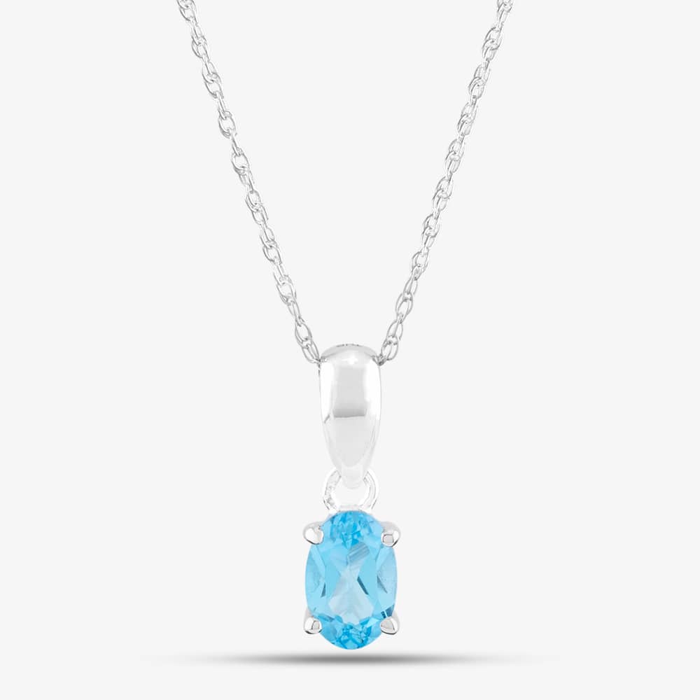 9ct White Gold Oval Cut Blue Topaz Necklace OJS0006P-SBT 9KW 9ct White Gold Oval Cut Blue Topaz Necklace OJS0006P-SBT 9KW