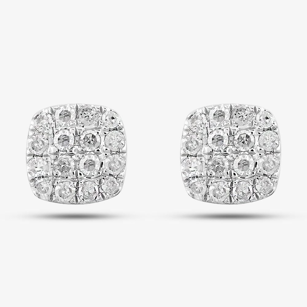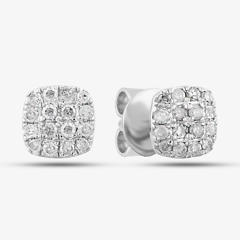 These stunning stud earrings are crafted in 9ct white gold & feature a rounded square design that is set with sparkling pave set diamonds which catch the light beautifully. These earrings are completed with a post & butterfly fastening.