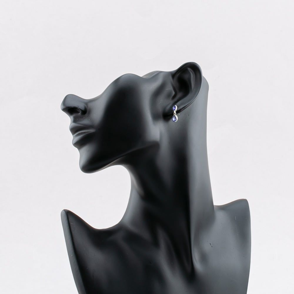 These elegant 9ct White Gold Pear Cut Tanzanite Double Dropper Earrings feature two beautifully matched pear-shaped tanzanite stones that shimmer with captivating blue-violet hues. Crafted in polished 9ct white gold, the graceful double-drop design adds movement and sophistication—perfect for adding a touch of luxury to any occasion.
