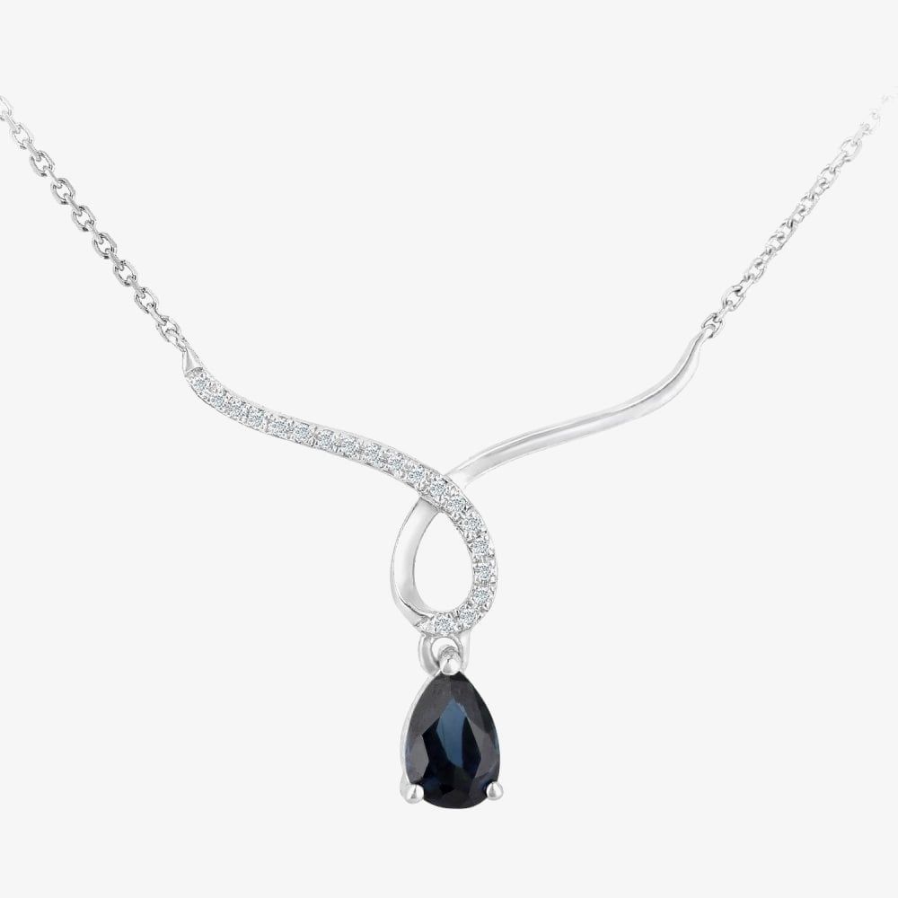 9ct White Gold Pear Shaped Sapphire & Diamond Set Wishbone Necklace DP1614WSA 9ct White Gold Pear Shaped Sapphire & Diamond Set Wishbone Necklace DP1614WSA
