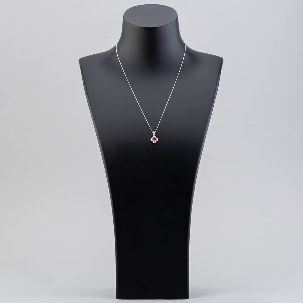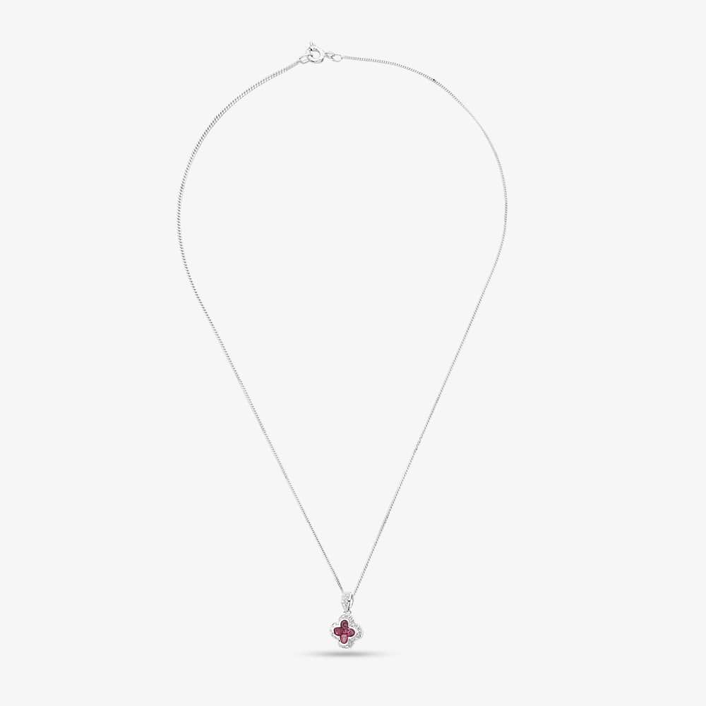 9ct White Gold Ruby and Diamond Quatrefoil Cluster Necklace PP05330 RU 9ct White Gold Ruby and Diamond Quatrefoil Cluster Necklace PP05330 RU 9ct White Gold Ruby and Diamond Quatrefoil Cluster Necklace PP05330 RU
