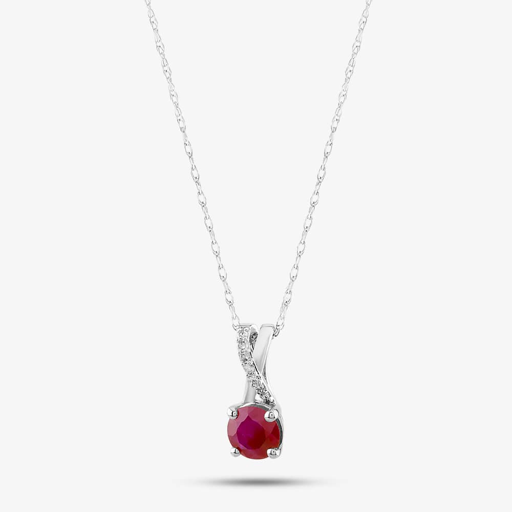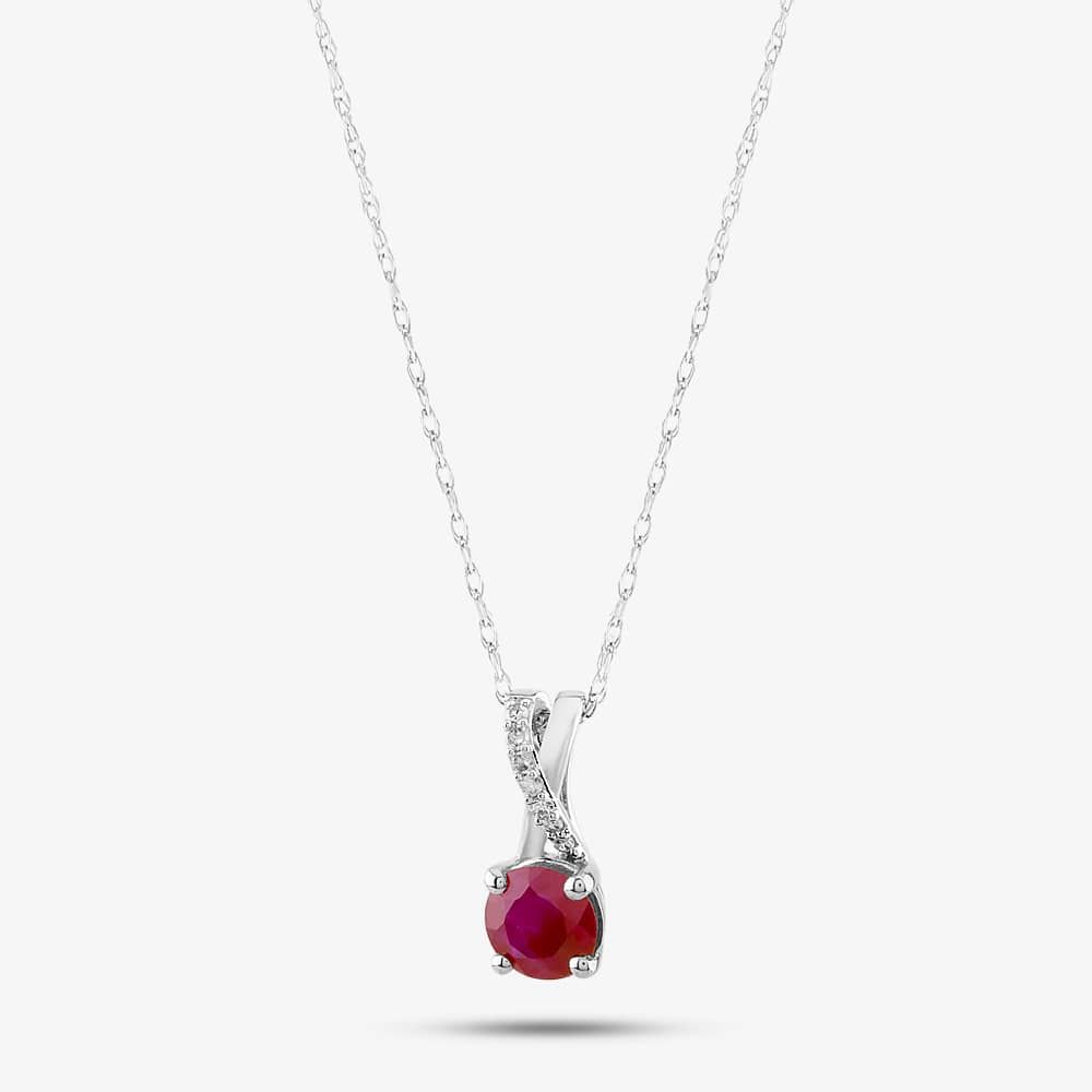 9ct White Gold Ruby & Diamond Crossover Pendant Necklace OJP1703-R